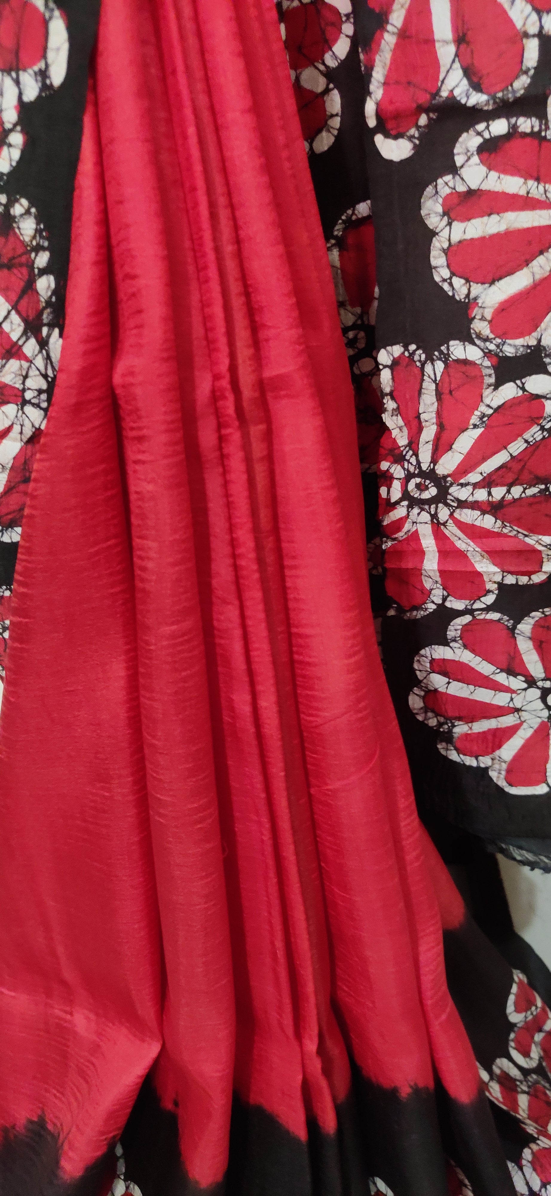 Flowery Red & Black Hand Batik Pure Silk Saree
