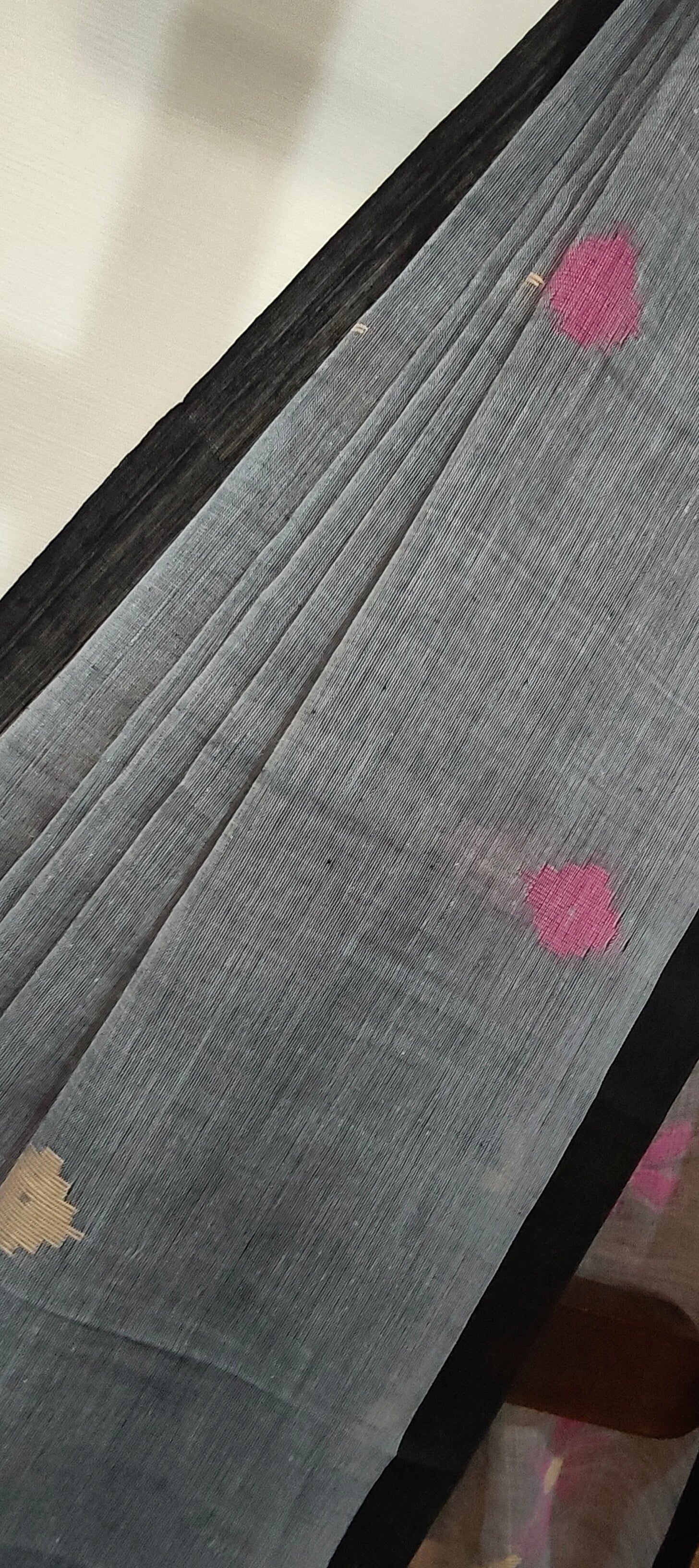 Gray & black handspun Pure Muslin Cotton handloom Jamdani