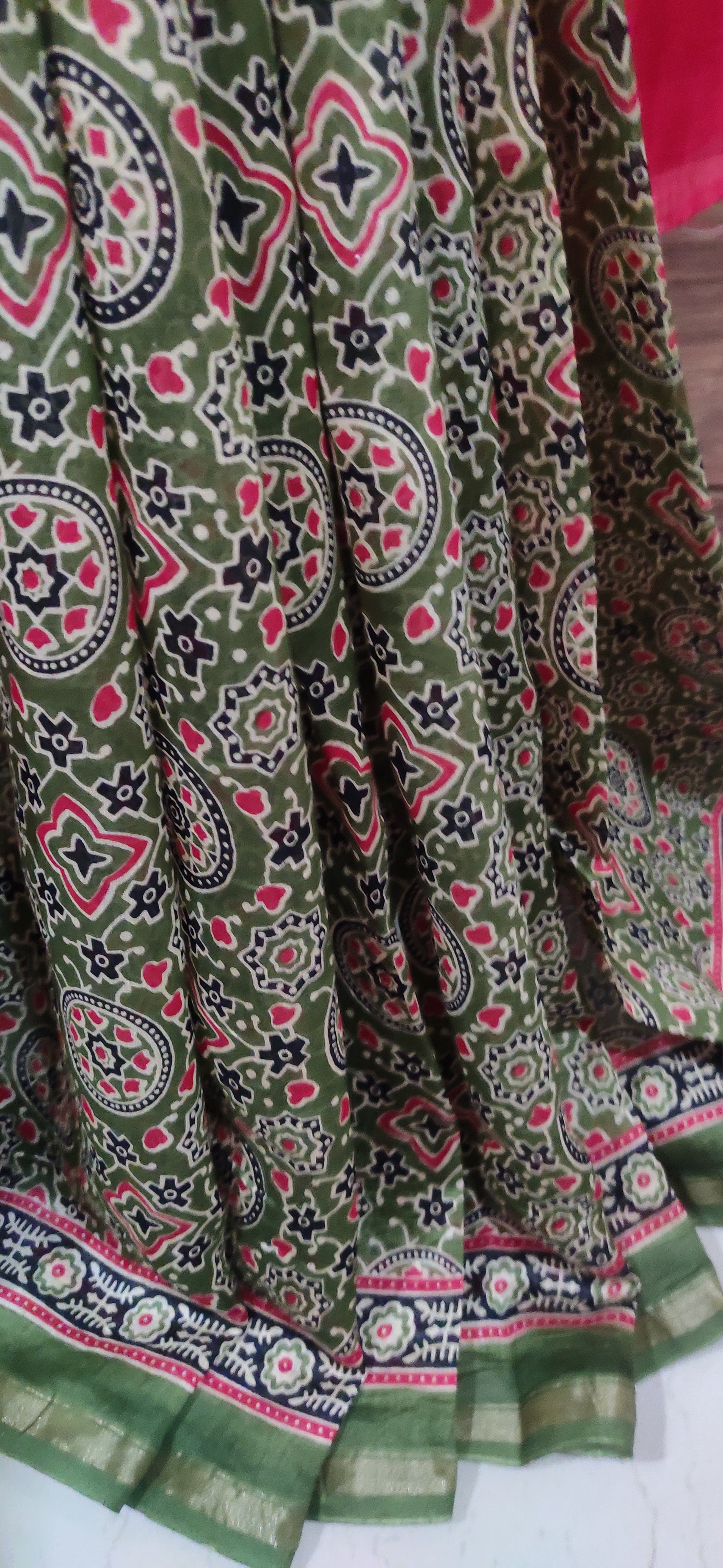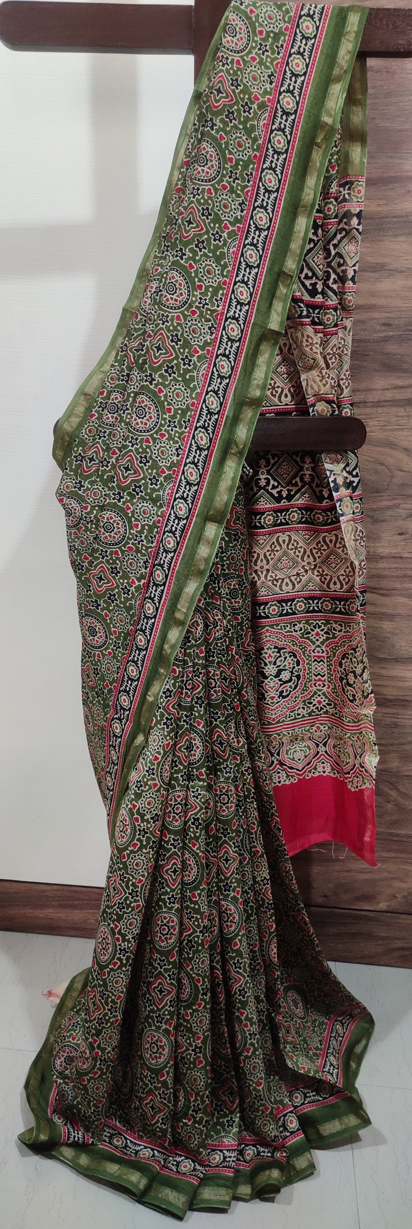 Green Chanderi Silk Cotton Hand Block Printed Saree