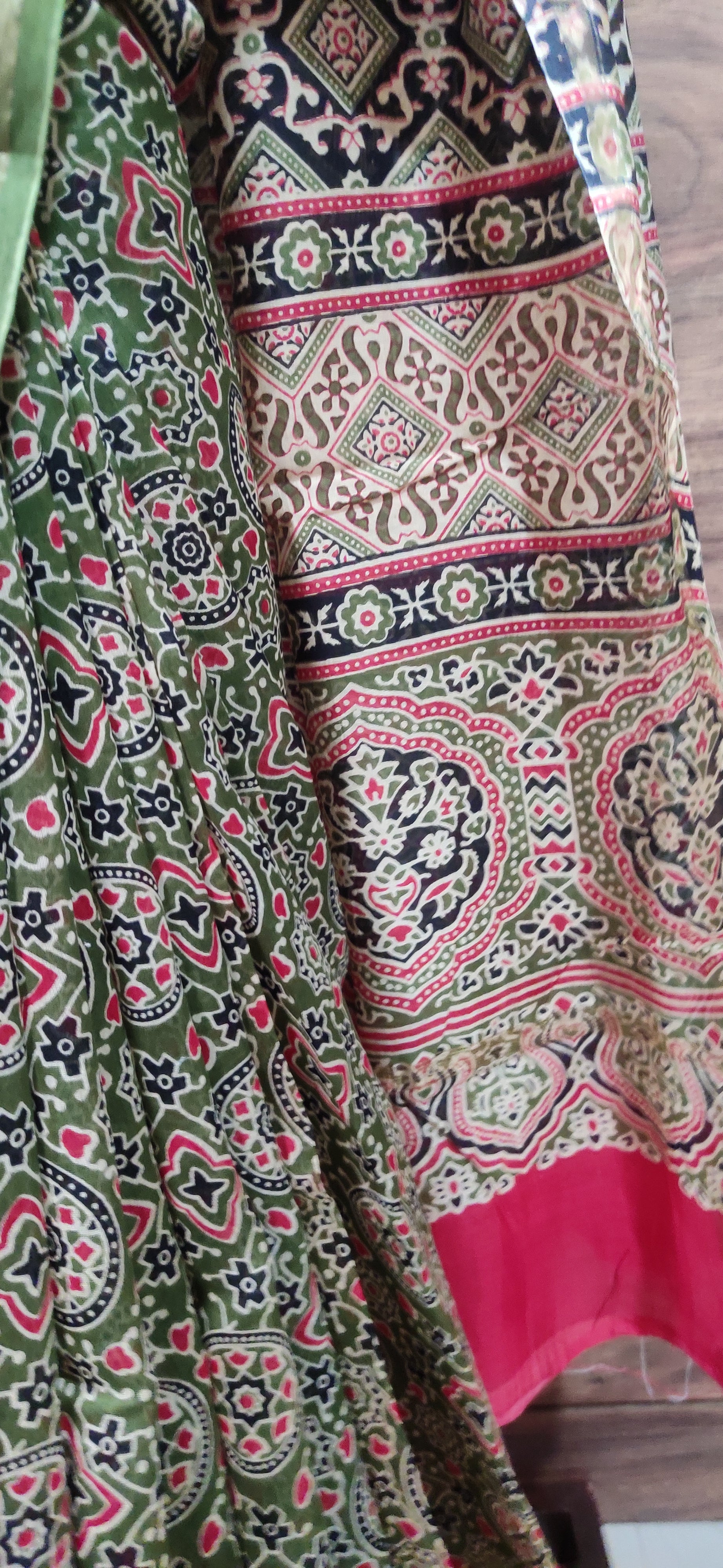 This Green Chanderi Silk Cotton Saree combines the lightweight elegance of Chanderi fabric with the breathable comfort of cotton. Featuring intricate hand block prints, it showcases traditional craftsmanship with a contemporary appeal. Ideal for both formal occasions and casual gatherings, this saree offers a refined drape and subtle sheen, ensuring you stand out with understated sophistication.