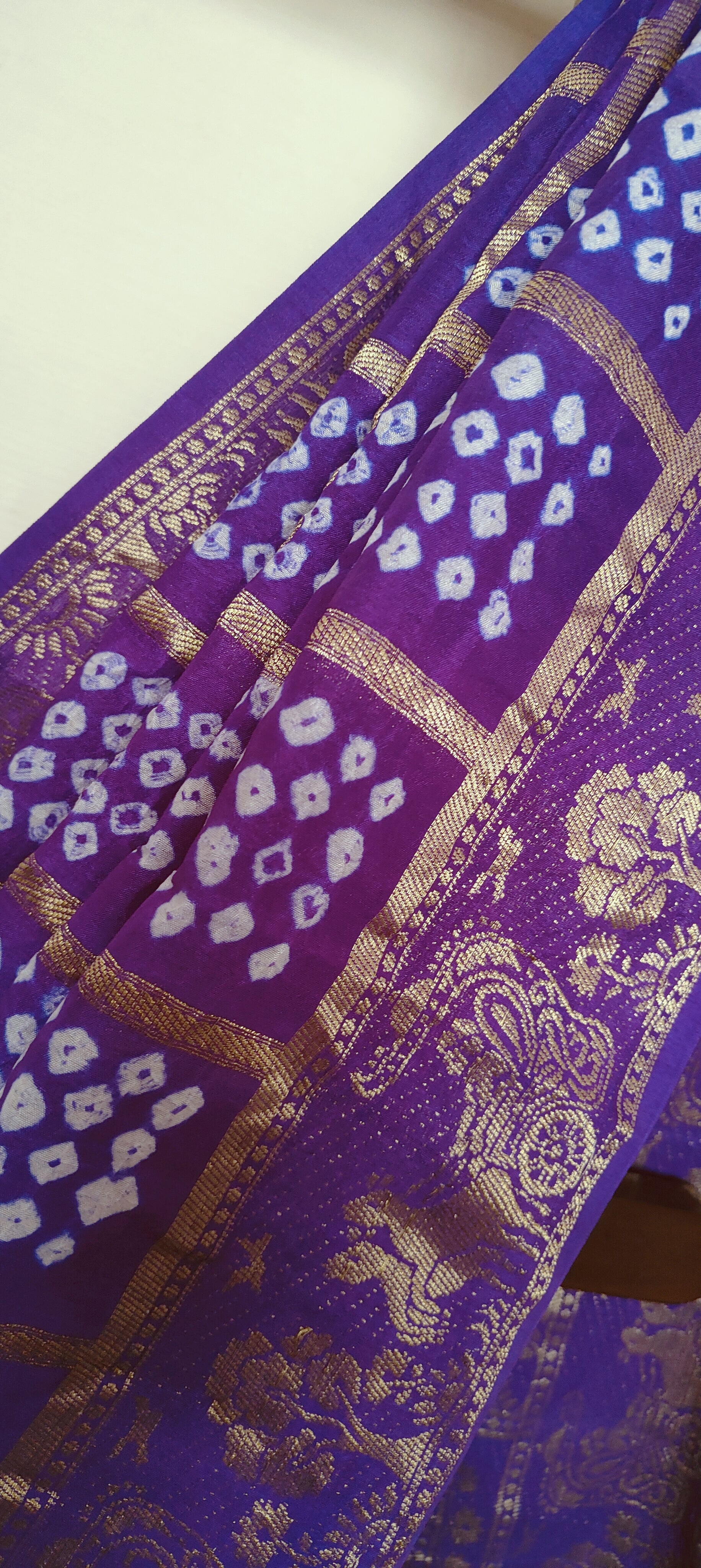 Handmade Gatt Chola Bandhani Banarasi Saree - Purple Dual Tone