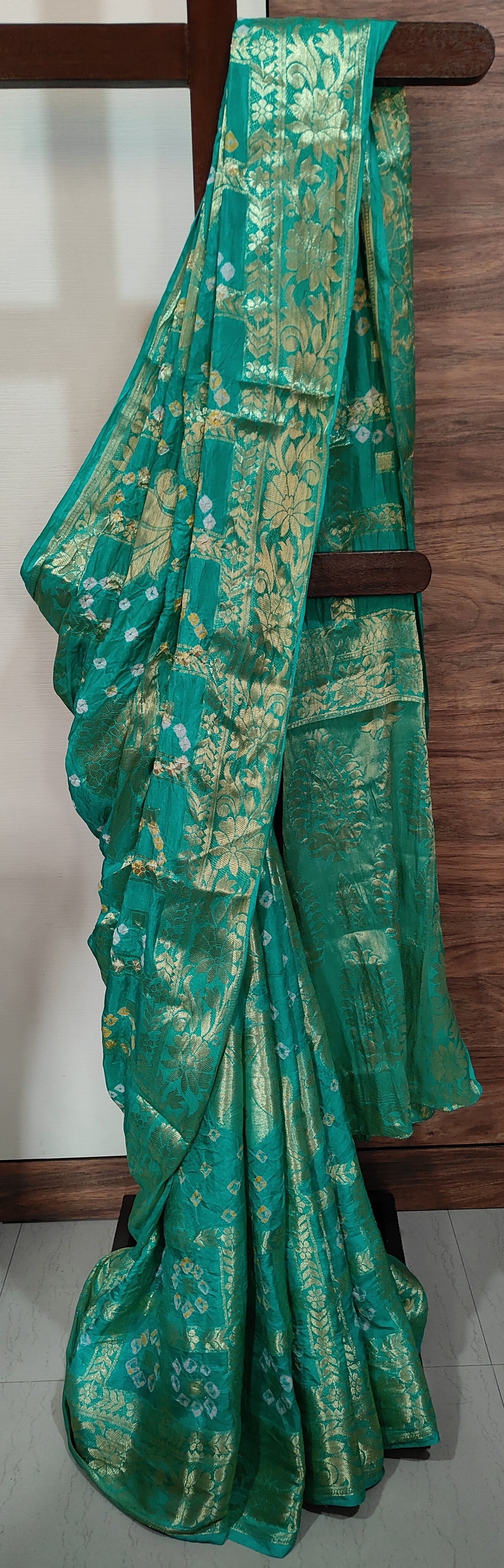 Handmade Gatt Chola Bandhani Banarasi Saree - Sea Green