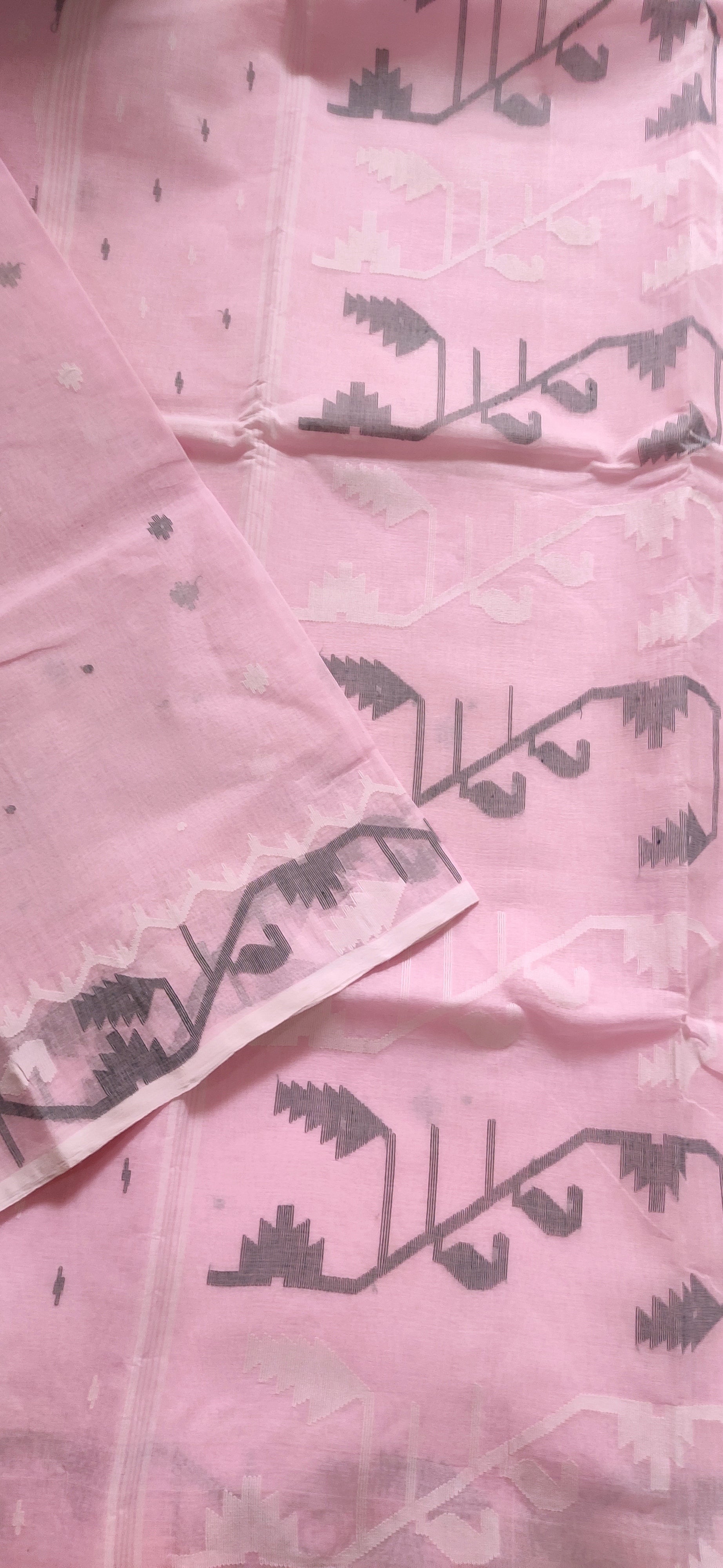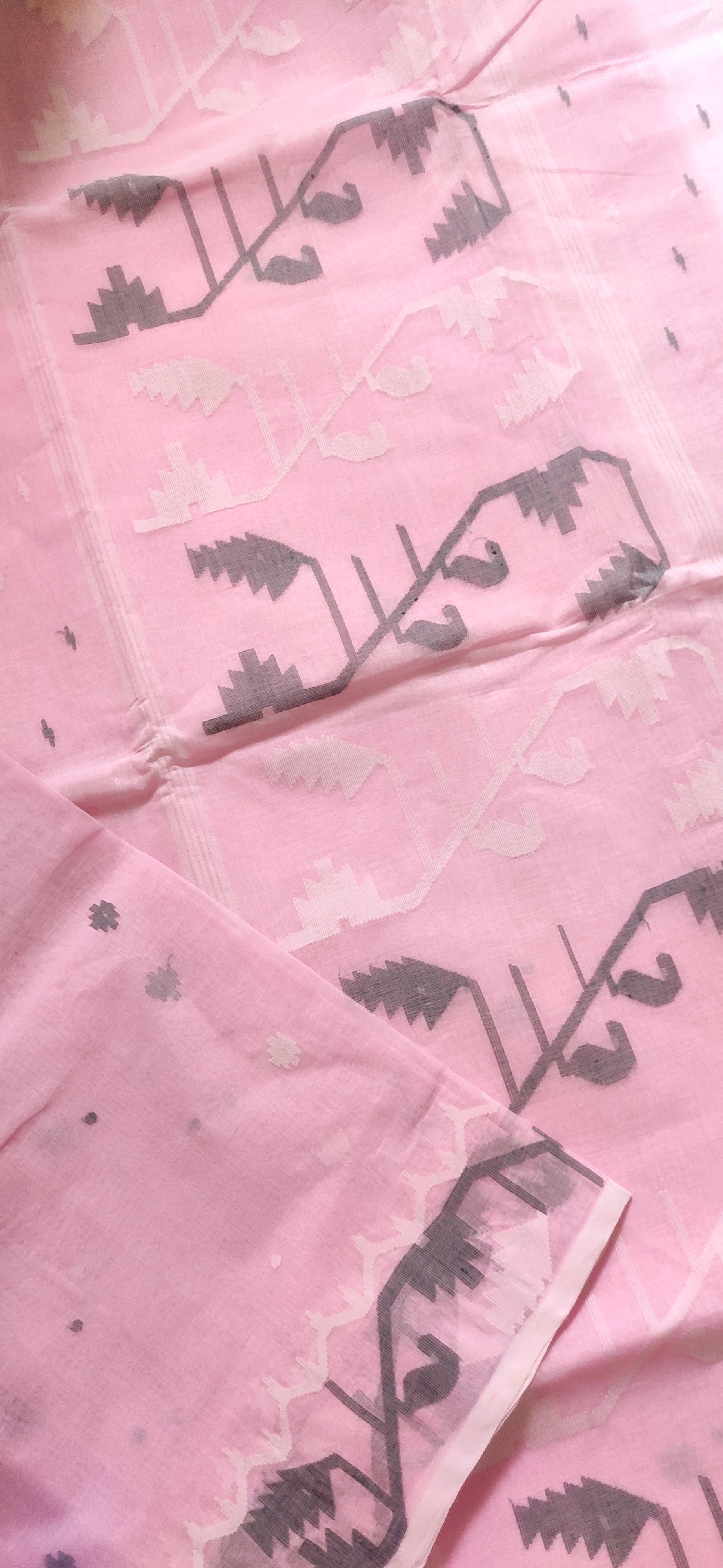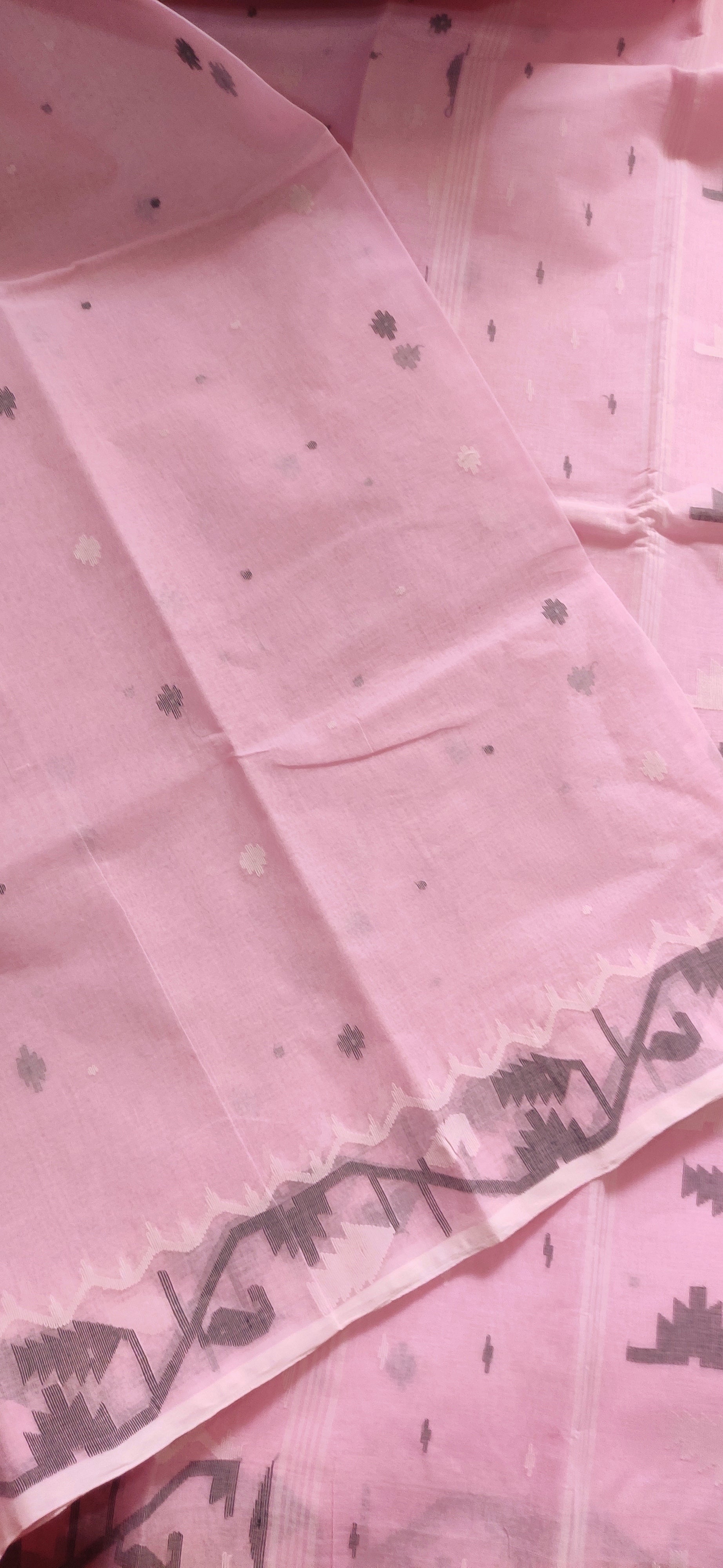 Pink Cotton Bengal Special Tant Weave Jamdani Saree