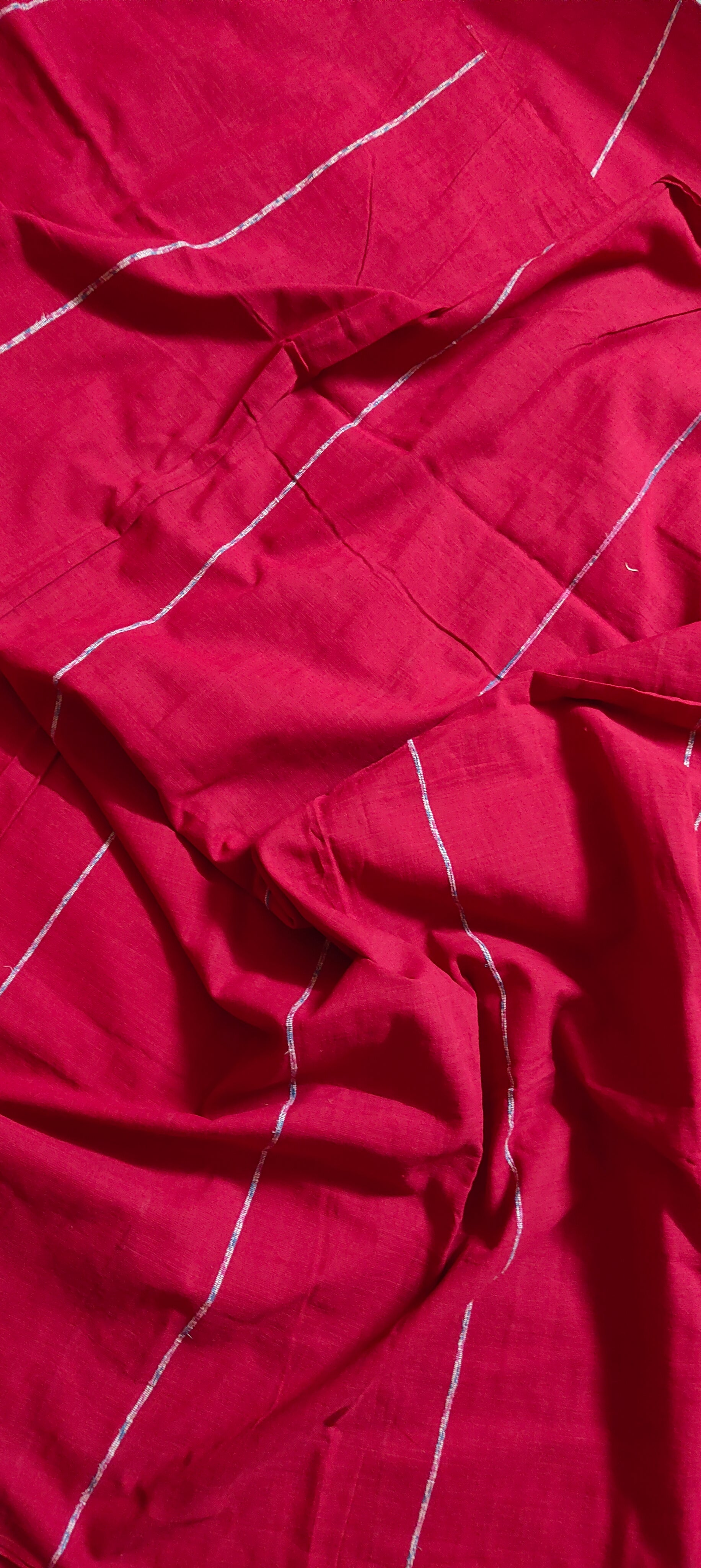 A cherished specialty of Bengal, this Plain Khesh Cotton Saree embodies generations of weaving heritage. Crafted from basic cotton, known for its exceptional softness and breathability, this saree drapes with effortless grace. The subtle strips showcase the refined artistry of Bengal's textile traditions. It's designed for comfort and versatility across seasons and occasions. Each handwoven piece carries the authentic character of traditional looms, with natural variations that honor the craftsmanship of skilled artisans.