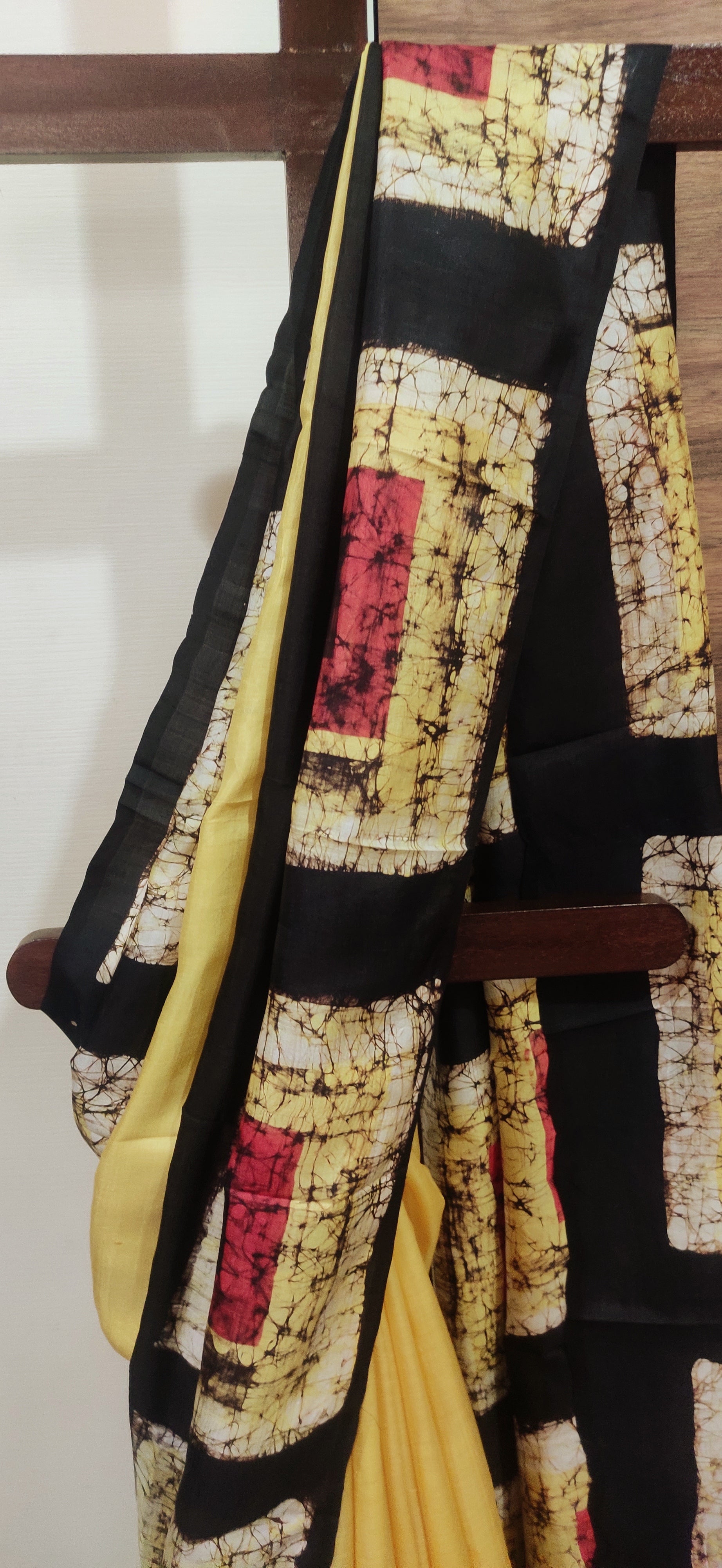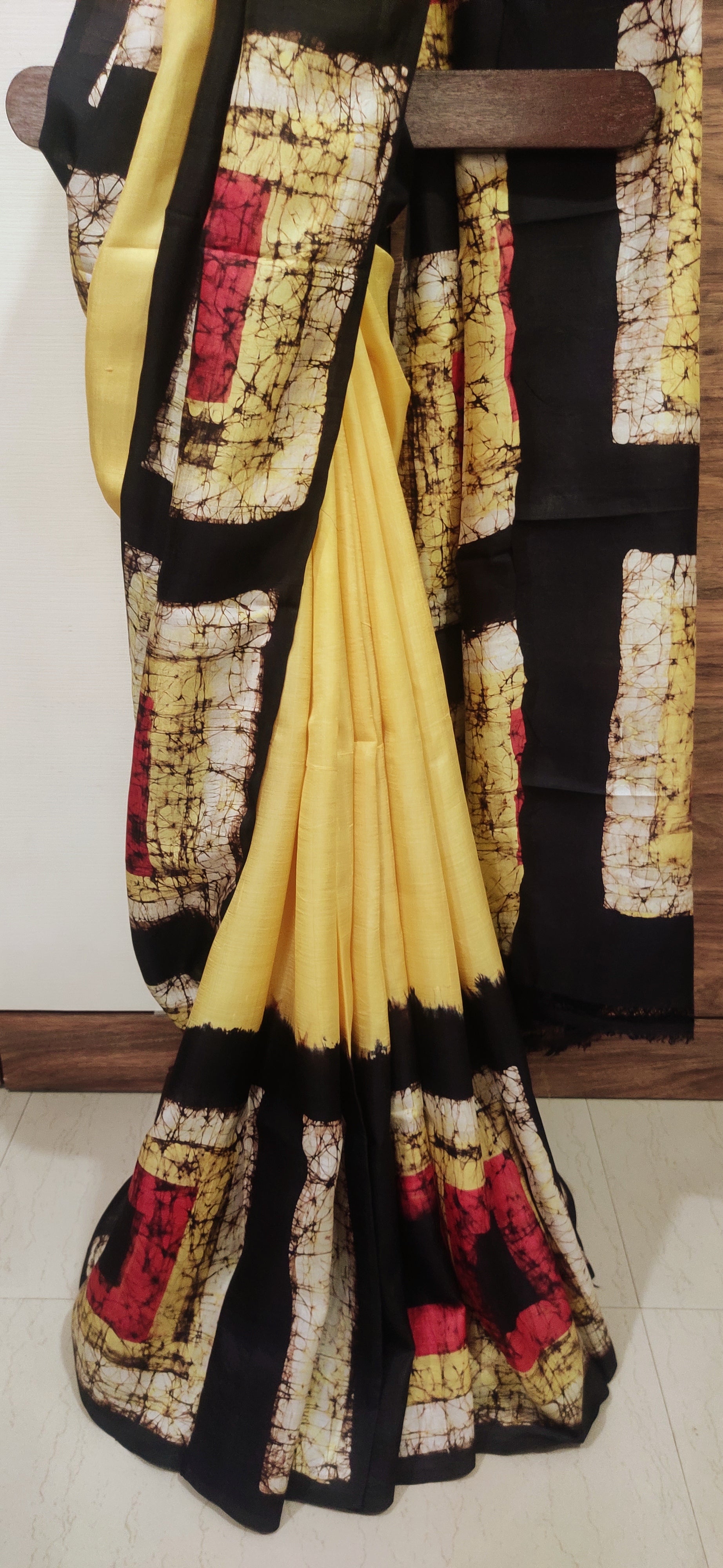 Broad Box Border Lime Yellow Hand Batik Pure Silk Saree