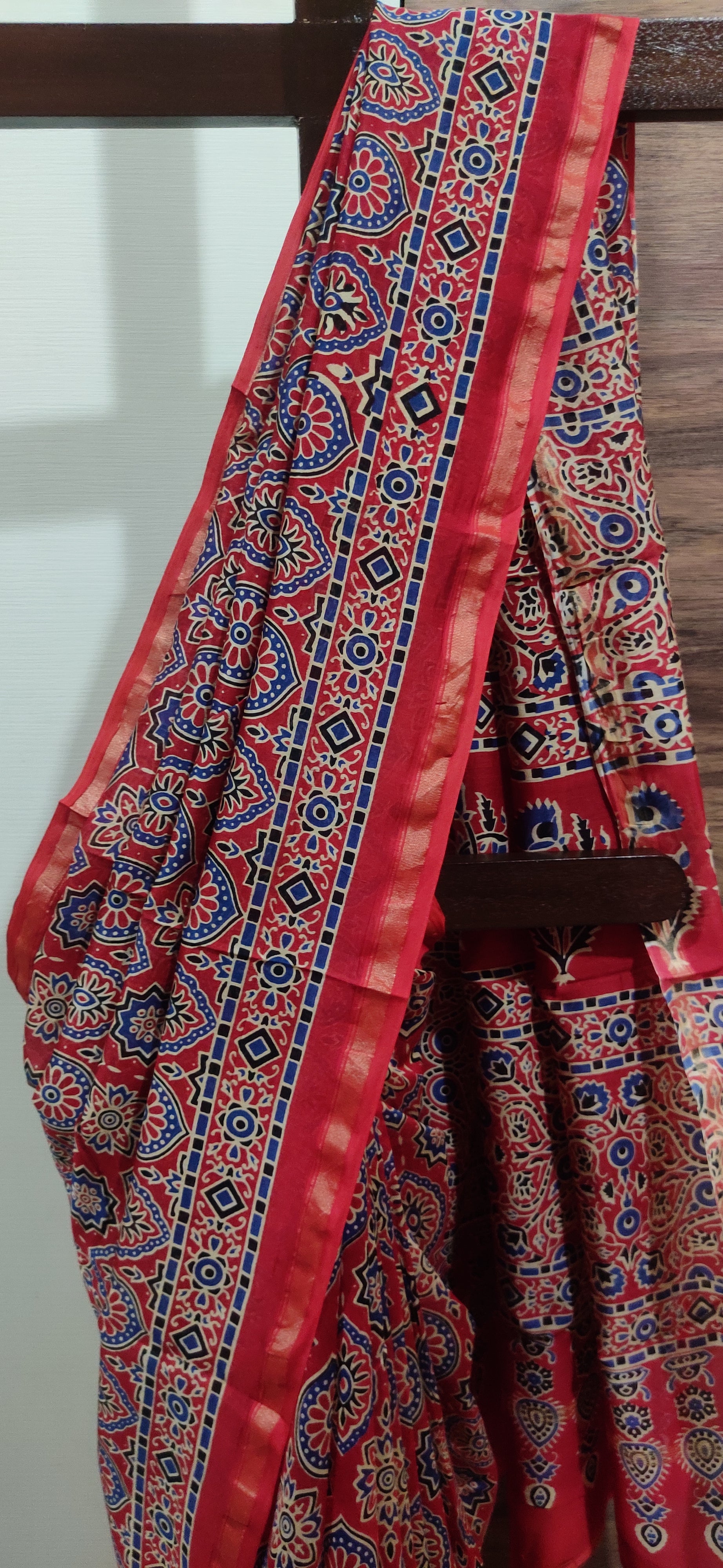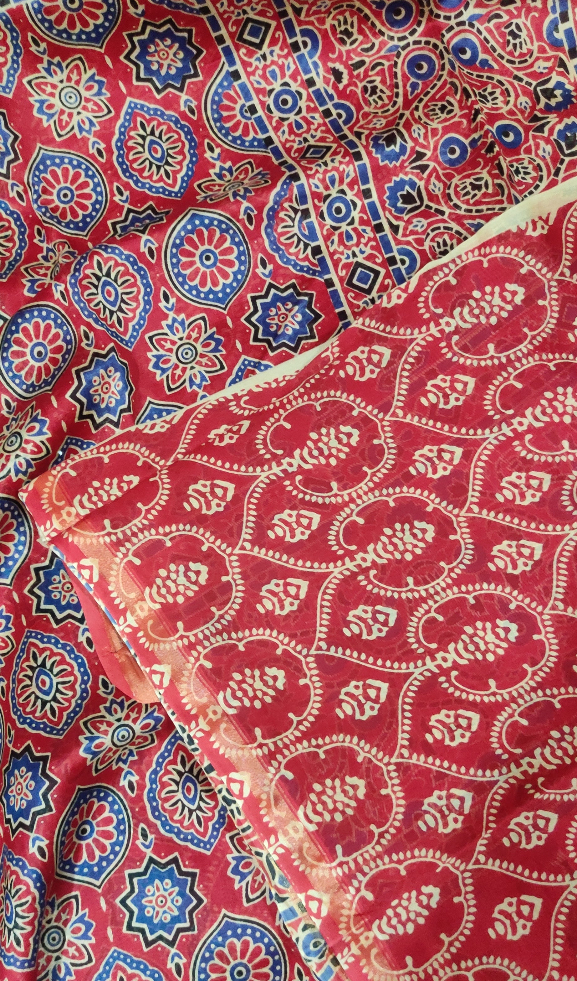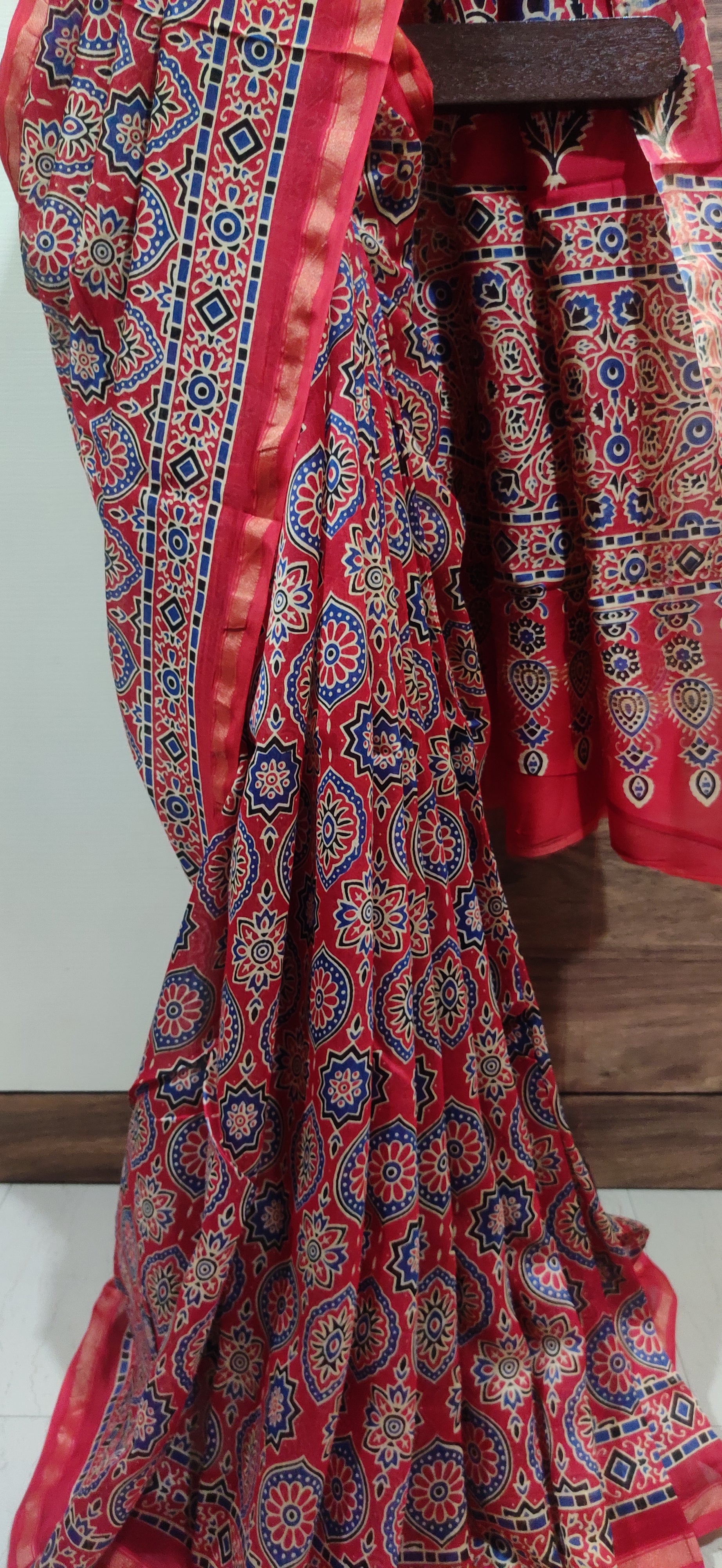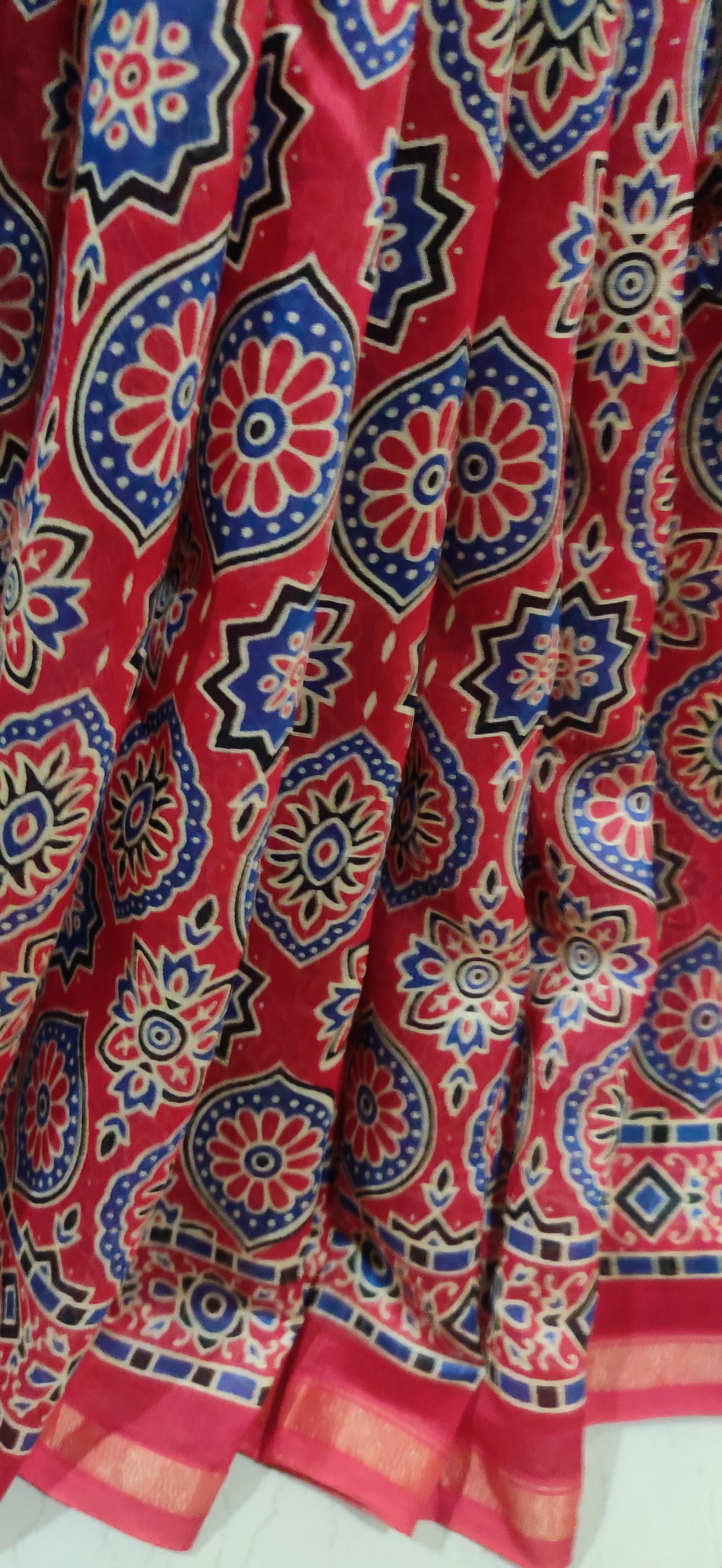 Red Chanderi Silk Cotton Hand Block Printed Saree
