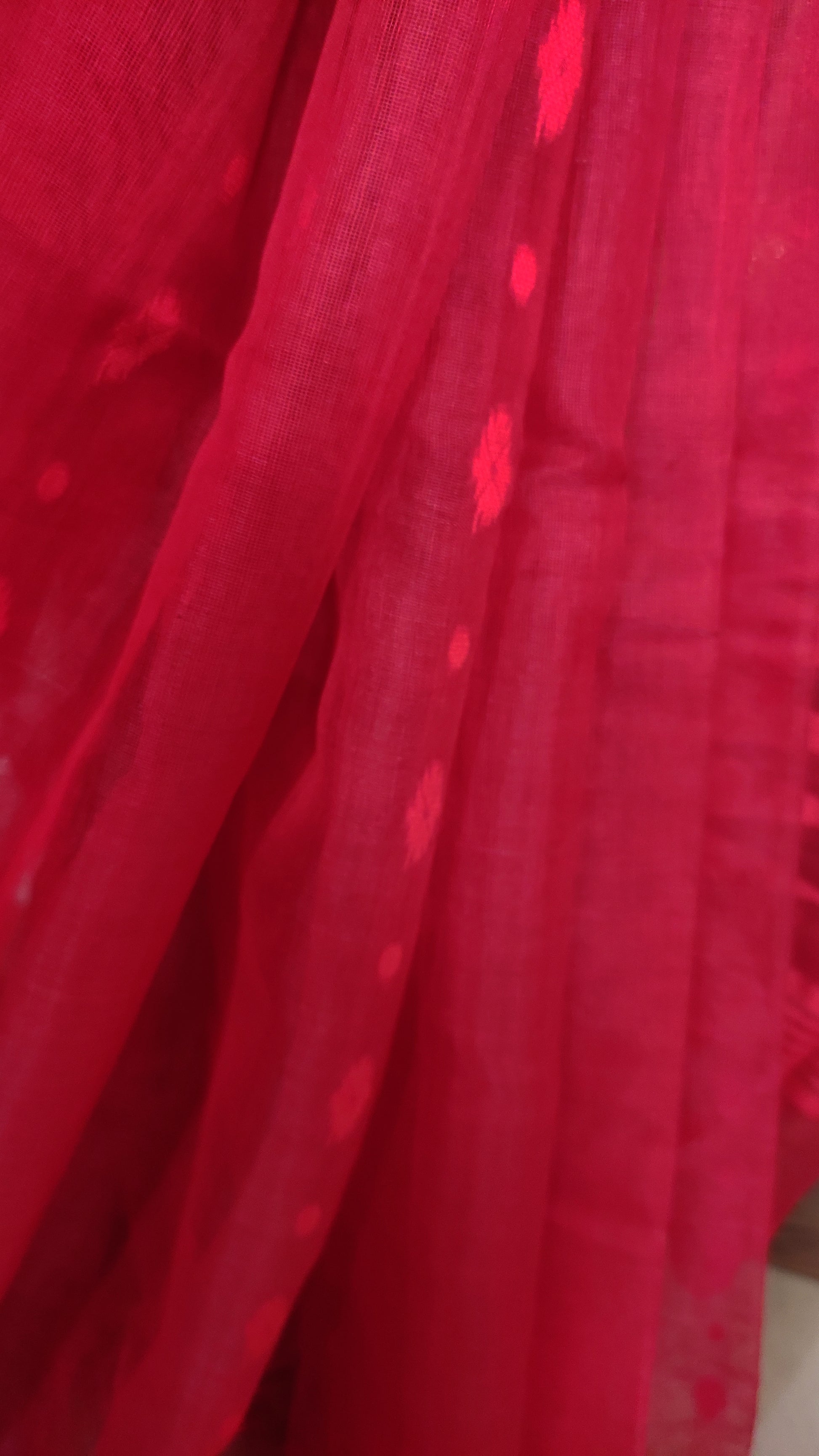 Red Silk Cotton Threaded motif done Jamdani Inspired Saree