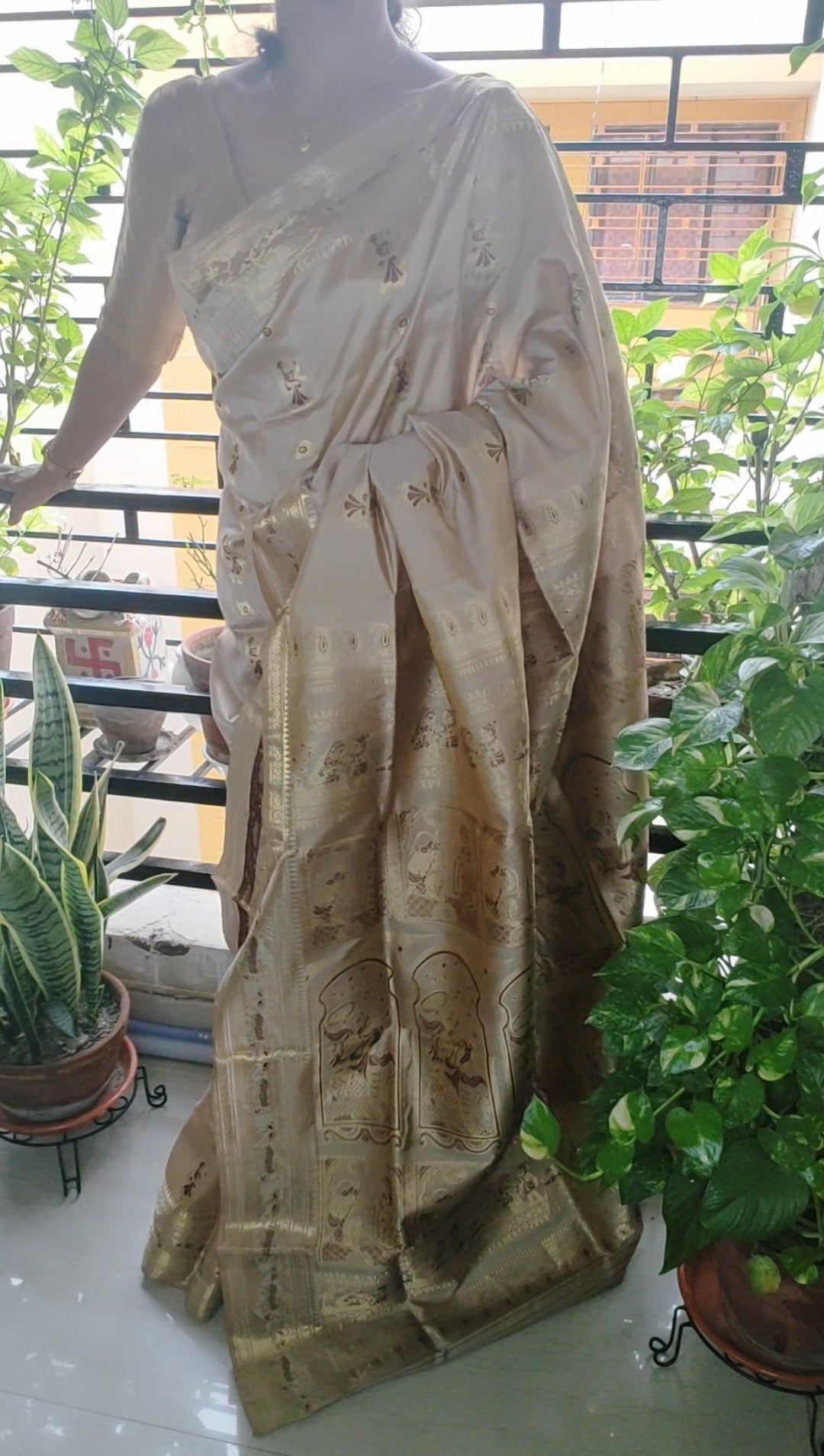 The rich weave of Bengal Swarnachori Royal Golden Saree