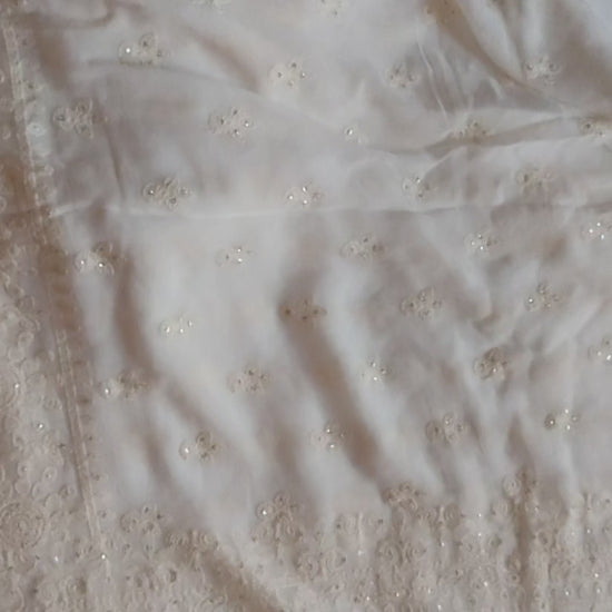 White Lucknowi Chikankari Saree With Sequin Embellishments