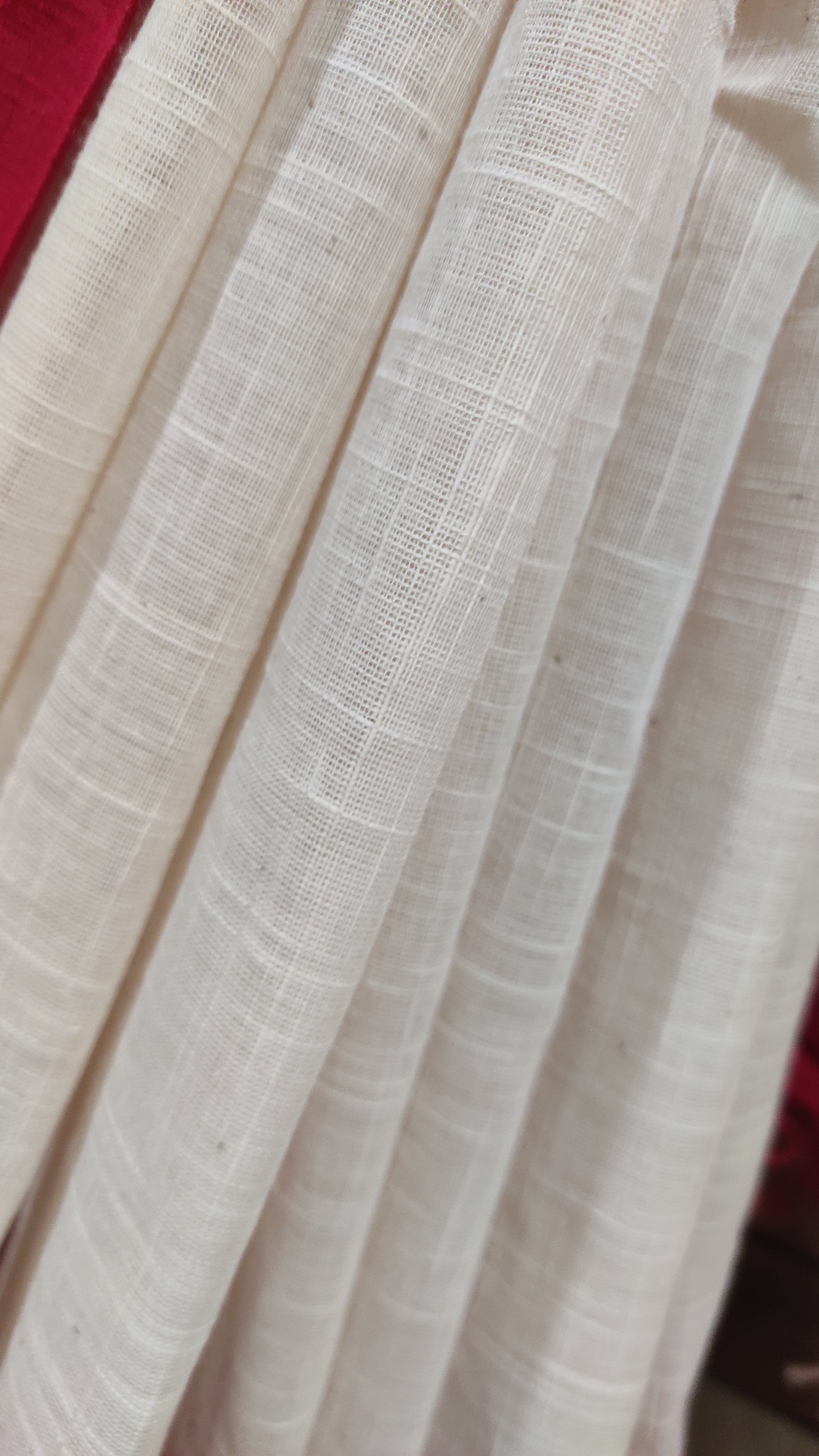 White-Red ikkat blended Plain border Linen Khadi Handloom Saree