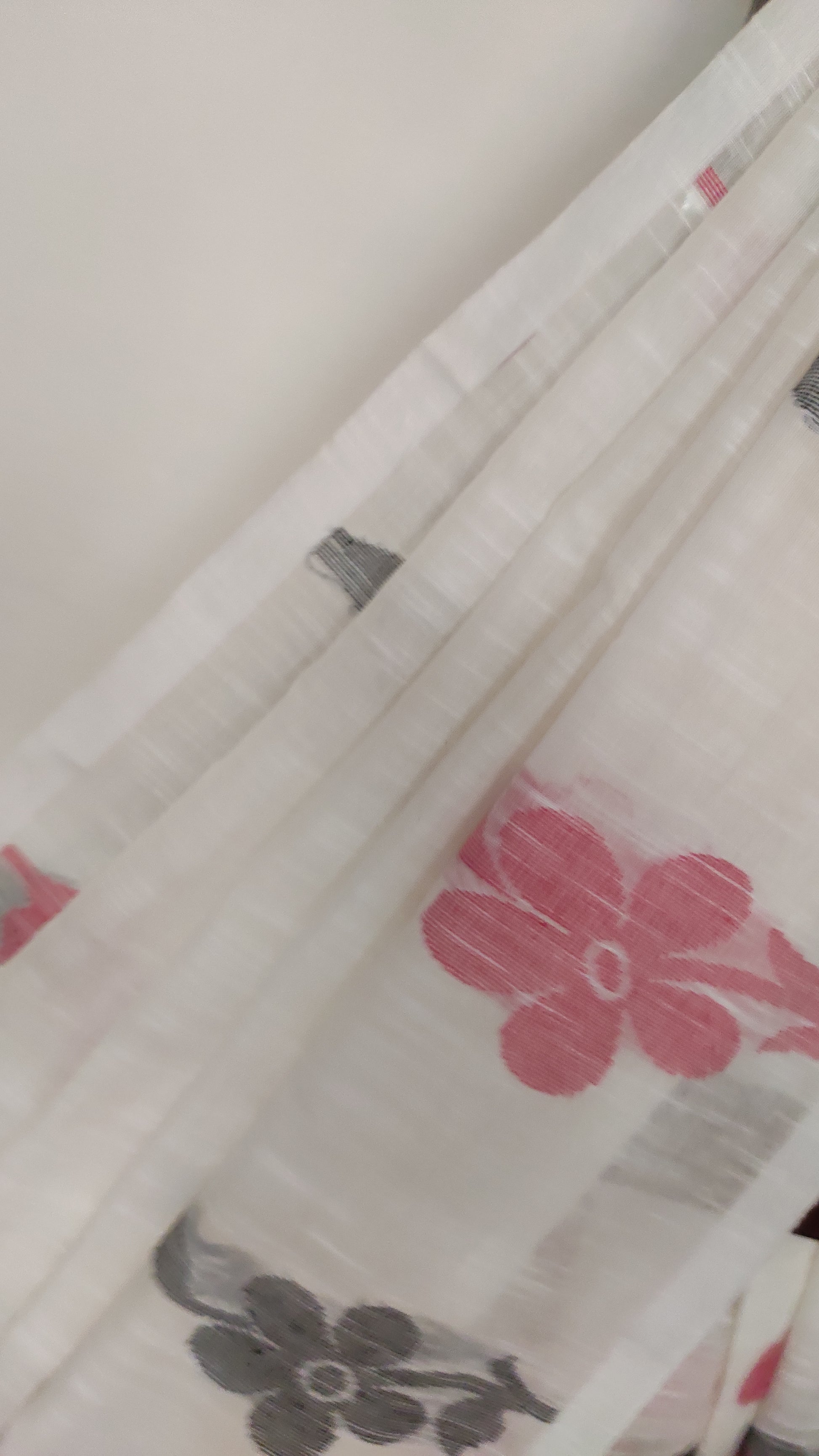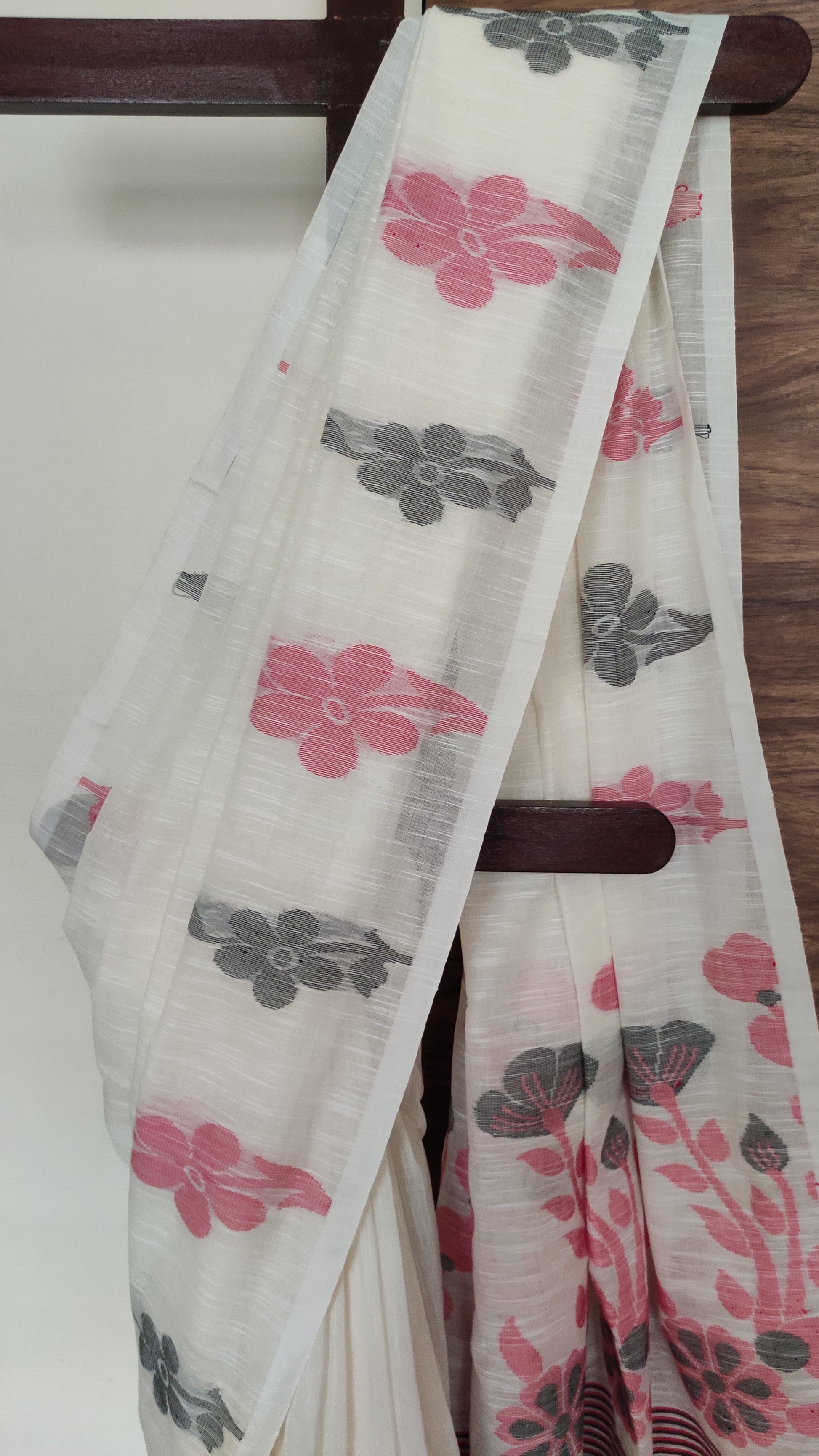 White Slab Cotton Threaded Red & Black Floral motif done border saree